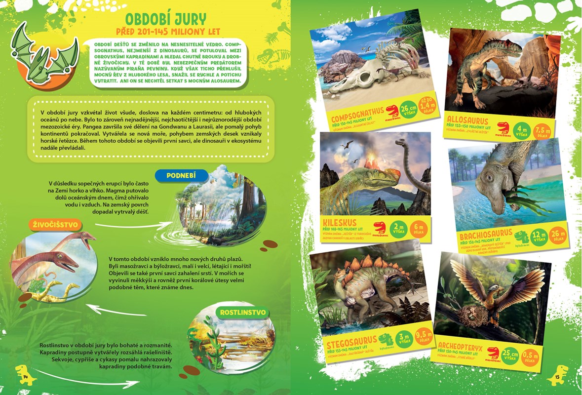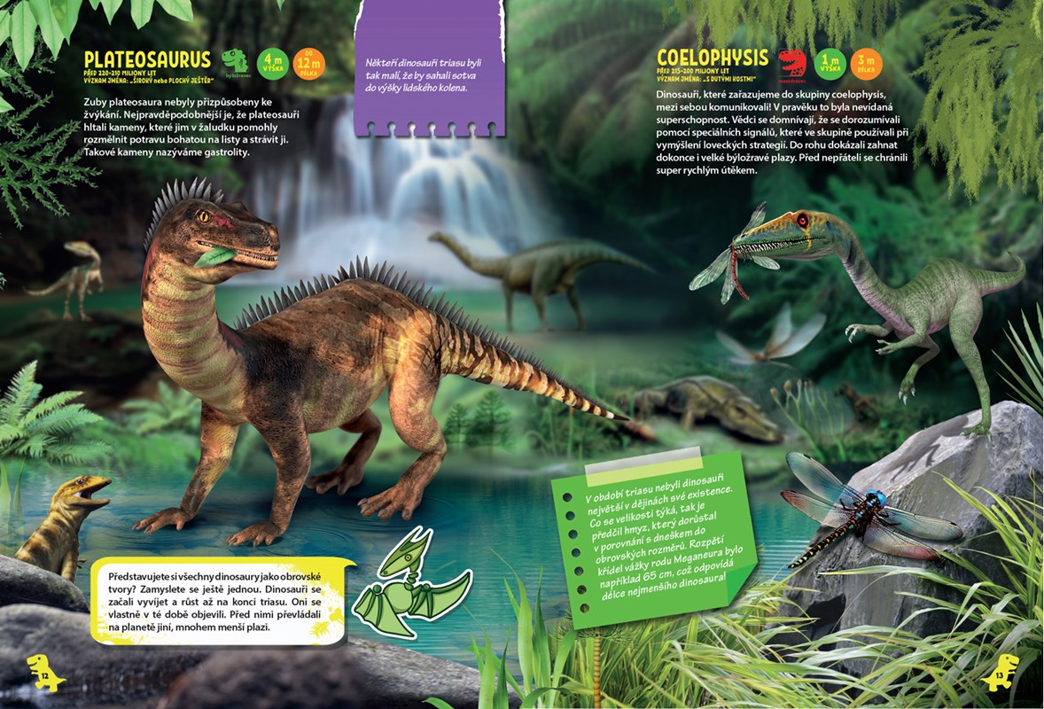 Všichni milovníci dinosaurů zbystřete oči. Na svět přichází krásná barevná knížka nabitá zajímavými informacemi ze světa dinosaurů. Z každé stránky na vás vykouknou tito nebezpeční predátoři, seřazeni dle doby, kdy žili. Taky se dozvíte, na čem si rádi pochutnali, do jaké výšky a délky dorůstali a přečtete si pikantnosti z jejich života. Tato zajímavá stvoření už na vás čekají. A pozor, nezapomeňte si stáhnout aplikaci Devar, díky které uvidíte dinosaury v rozšířené realitě, tedy přímo u vás doma! Bude to pecka!