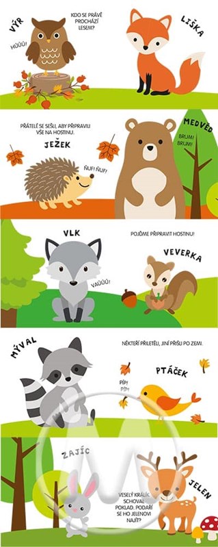 Díky těmto šesti malým knížečkám se nejmenší děti naučí pojmenovat zvířátka. Krátké a hravé texty jsou určeny pro první čtení. Ze zadních částí knížek si děti mohou poskládat puzzle. Knížky přinášejí spoustu zábavy.