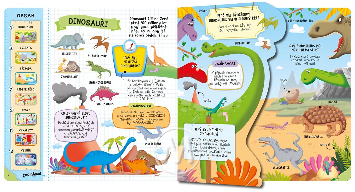 Děti jsou zvědavé a chtějí vědět, jak vše funguje. Tato zábavná kniha s mnoha klopami a interaktivními prvky jim zábavnou a poutavou formou poví vše o světě. Pojďme zjistit vše o dinosaurech, zvířatech, přírodě, lidském těle, sportu, vynálezech a vesmíru.