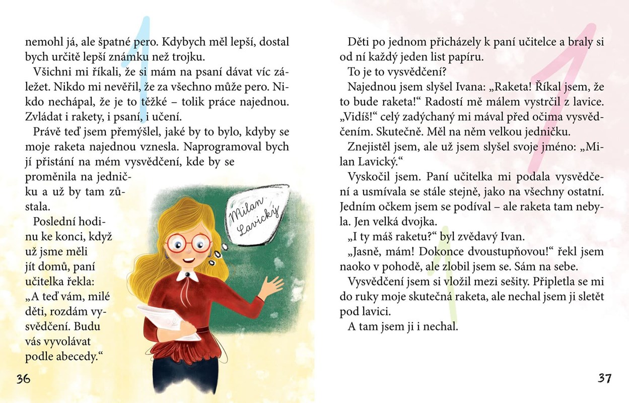 V knížce se dočtete o veselých zážitcích malého žáka třídy 1. E Milana Lavického. Vypravování je podané z pohledu hlavního hrdiny v první osobě, takže malí prvňáci budou mít možnost s Milánkem všechno téměř autenticky prožívat.