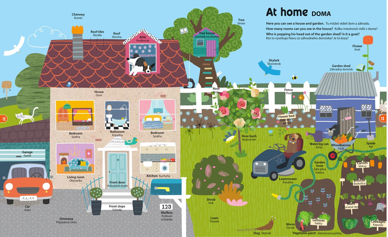 Kniha rozvíja jazykové schopnosti dieťaťa. Obsahuje hru - malí čitatelia musia nájsť šteniatko menom Toby na každej strane a naskenovať ho smartfónom alebo tabletom. Následne sa im spustí na smart zariadení stránka so všetkými slovíčkami, na ktoré môžu ťuknúť a vypočuť si ich správnu výslovnosť. Kniha obsahuje až 30 rozličných tém (rodina, bývanie, škola, mesto, zvieratá, povolania, ročné obdobia a počasie, športy, farby a tvary, čísla a čas, pocity, slová z rozprávok...).