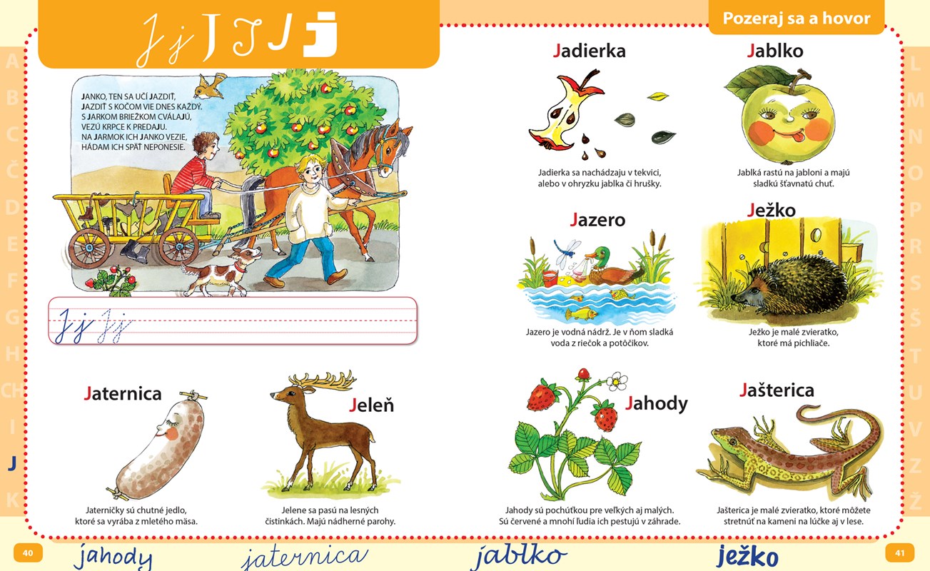 Poďte sa hrať s abecedou a spoznajte jednotlivé písmenká zábavnou formou! V knižke nájdete pestrú zmes zábavných riekaniek, maľované čítanie, jednoduché a vtipné počítanie, úsmevné obrázky a tiež písanku na precvičovanie si písania. Deti získajú vedomosti o abecede prostredníctvom hier s písmenkami, slovíčkami i vetami a rozšíria si tak slovnú zásobu. Abeceda sa vás už nevie dočkať!