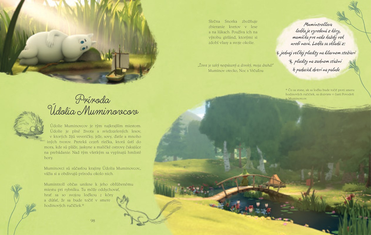 Objavte čarovné Údolie Muminovcov s touto knižkou plnou zaujímavostí a fascinujúcich príbehov o vašom obľúbenom Mumintrollovi, jeho rodine a kamarátoch Snusmumrikovi, Mrnke, slečne Snorke a Sniffovi. Vďaka tejto jedinečnej knihe navštívite Muminovcov v ich okrúhlom modrom Muminovskom dome, zistíte ako žijú a vypočujete si ich dobrodružné príbehy.