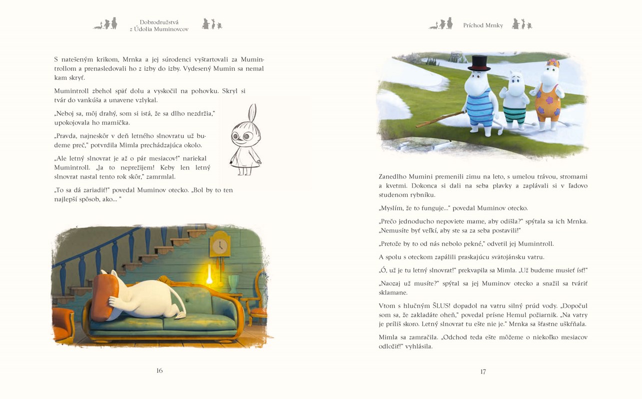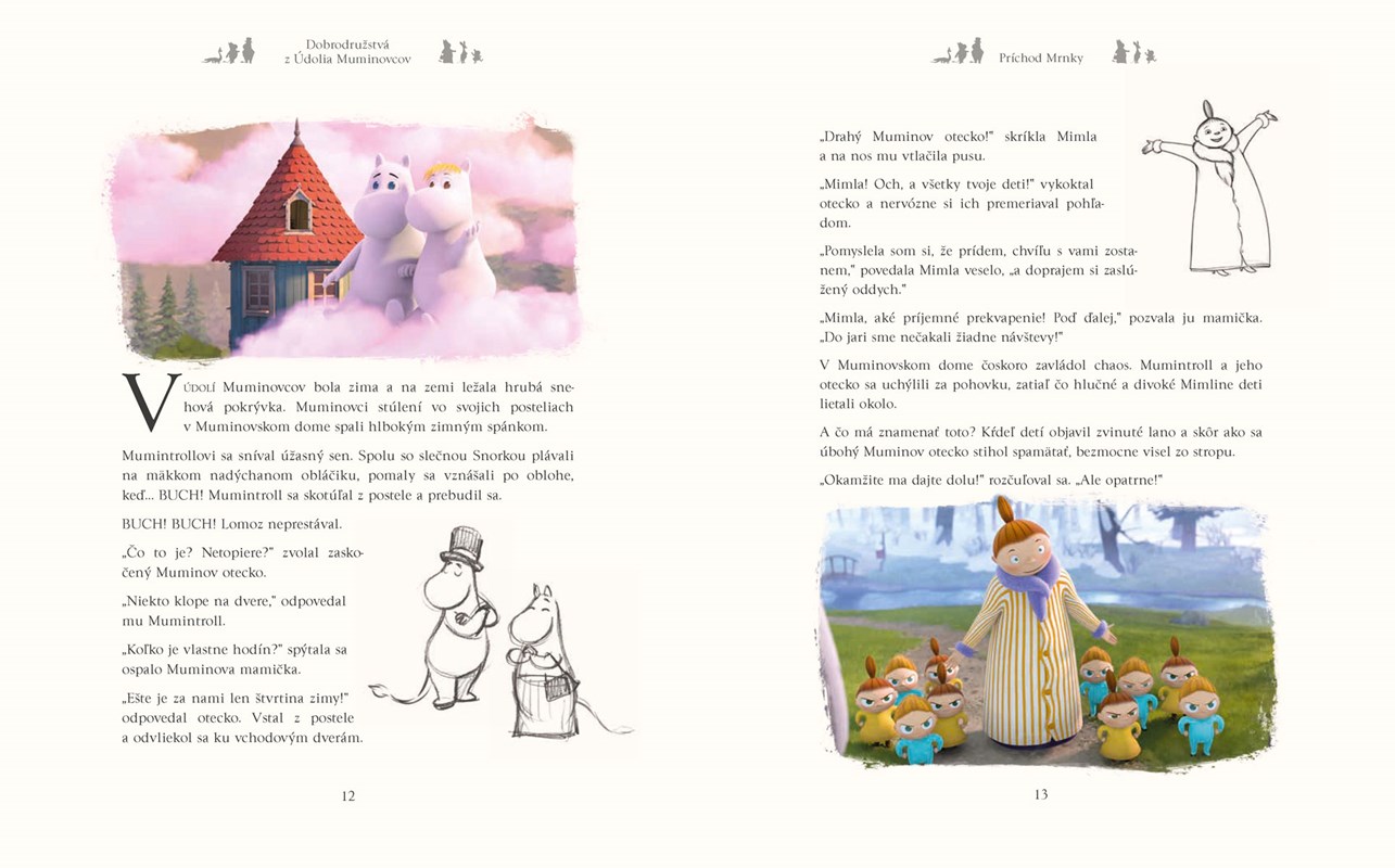 Aké príbehy ukrýva najkrajšie údolie na svete nedotknuté človekom, kde stojí vysoký okrúhly modrý dom so záhradkou a potôčikom obklopený horami? Po tomto nebesky krásnom a pokojnom mieste cupitajú Muminovci a ich kamaráti žijúci v harmónii s prírodou. Aké dobrodružstvá nazbierali do kapsičky zážitkov? Určite si tieto rozkošné stvorenia so srdiečkami bijúcimi jeden pre druhého obľúbite.