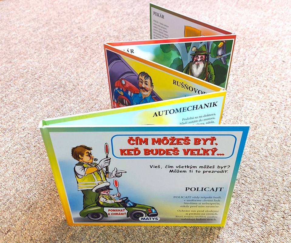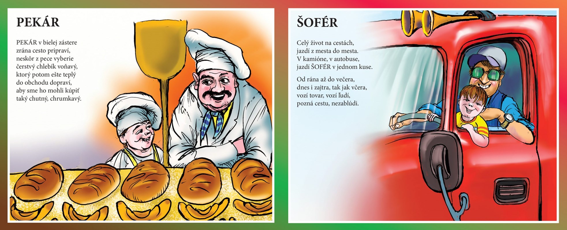 Veselé rozkladacie leporelo s podnadpisom: ,,Vieš, čím všetkým môžeš byť? Môžem ti to prezradiť.“ prináša desať krátkych roztomilých básničiek o najobľúbenejších chlapčenských povolaniach - kominár, automechanik, hasič, horár, záhradník, pekár, šofér, rušňovodič, smetiar a policajt. Malí zvedaví chlapci sa vďaka milým rýmujúcim sa veršíkom, ľahkým na zapamätanie, zoznámia s rôznymi prácami, medzi ktorými určite nájdu tú, ktorá sa im najviac zapáči.
