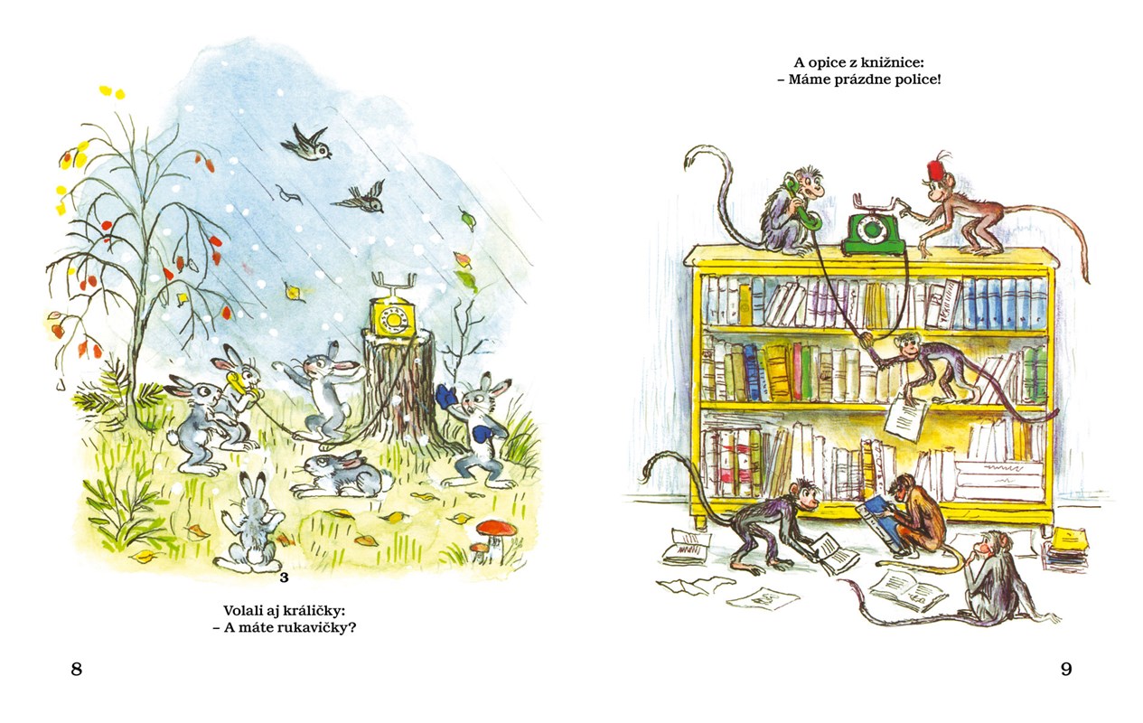 Prečo sa zvieratká hrnú k telefónu? Po čom piští ich srdiečko? Koho chcú počuť, komu pomôcť? Prečítate si, ako šteniatko a mačiatko hľadali stred klobásky. Zavítame tiež do sveta doktora Jajbolíta, ktorý vyšetrí všetky zvieracie boľačky. Vylieči aj chorých pacientov v ďalekej Afrike? A čo tak zoznámiť sa so švábom, ktorý všetkým naháňa strach?