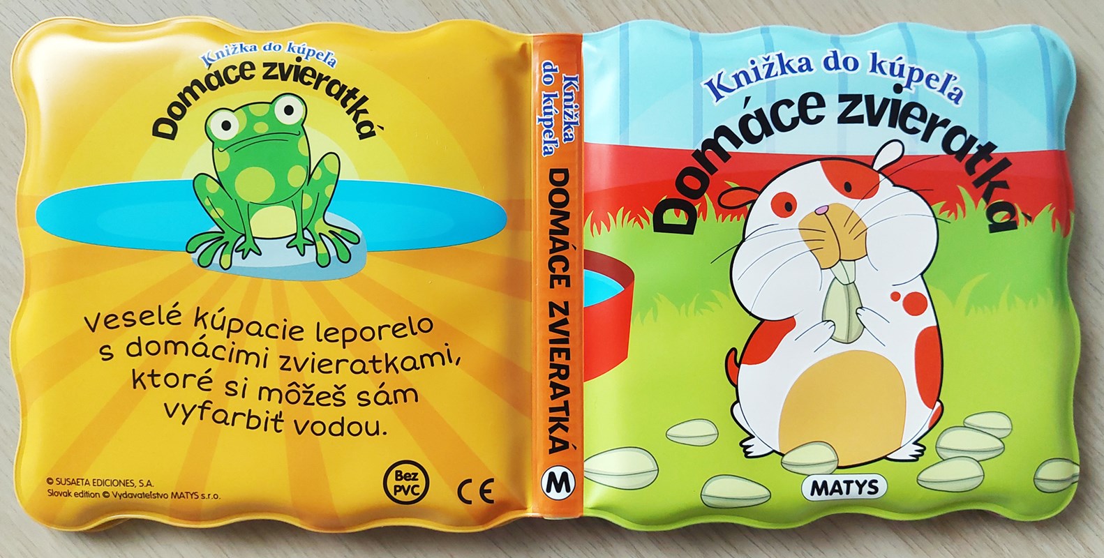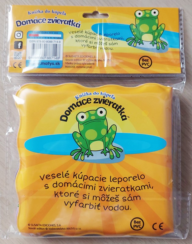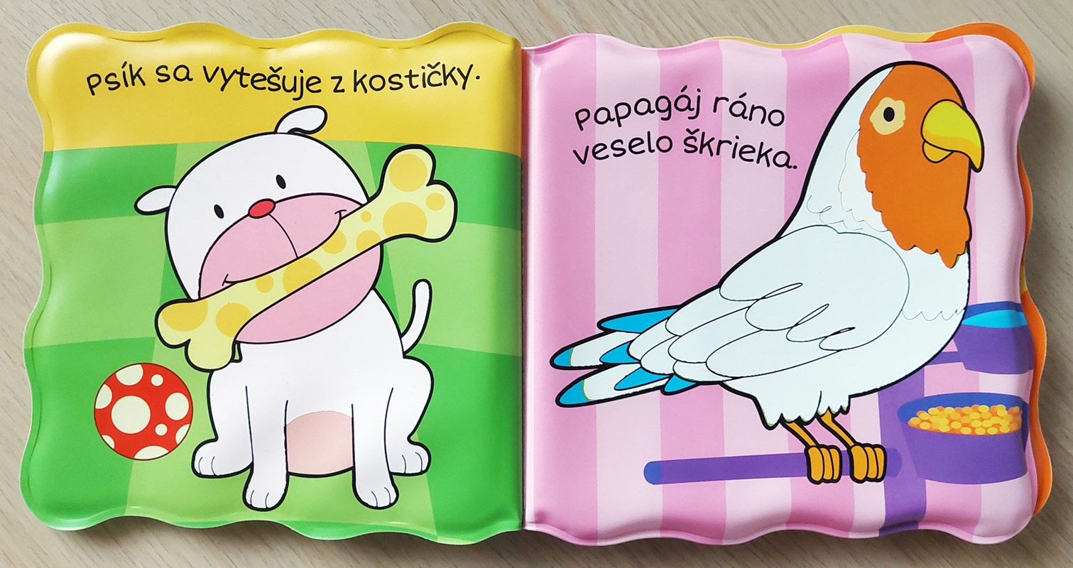 Séria Knižka do kúpeľa prináša deťom zábavu z vyfarbovania zvieratiek vodou! Krokom ku spríjemneniu chvíľ deťom počas kúpania je možnosť zabaviť ich leporelom. Nie však hocijakým, ale takým, ktoré sa rozžiari farbami po styku s vodou alebo so slinami. Alebo stačí pohár s vodou a drobné pršteky môžu kúzliť vodou priamo prechádzaním stranu po strane. O svojich drobcov sa nemusíte báť, pretože dané knižočky majú EÚ certifikát o zdravotnej neškodnosti. Môžu knihu močiť vo vode i olizovať, dokonca aj vtedy na nich spod obrázka vykukne farebné zvieratko. Veselé kúpacie leporelo s domácimi zvieratkami, ktoré si môžu vyfarbiť vodou (psík, papagáj, zajačik, korytnačka, rybka, mačiatko).