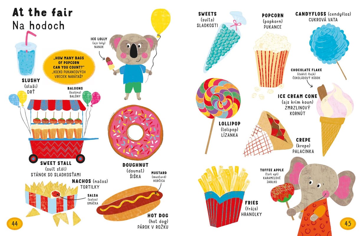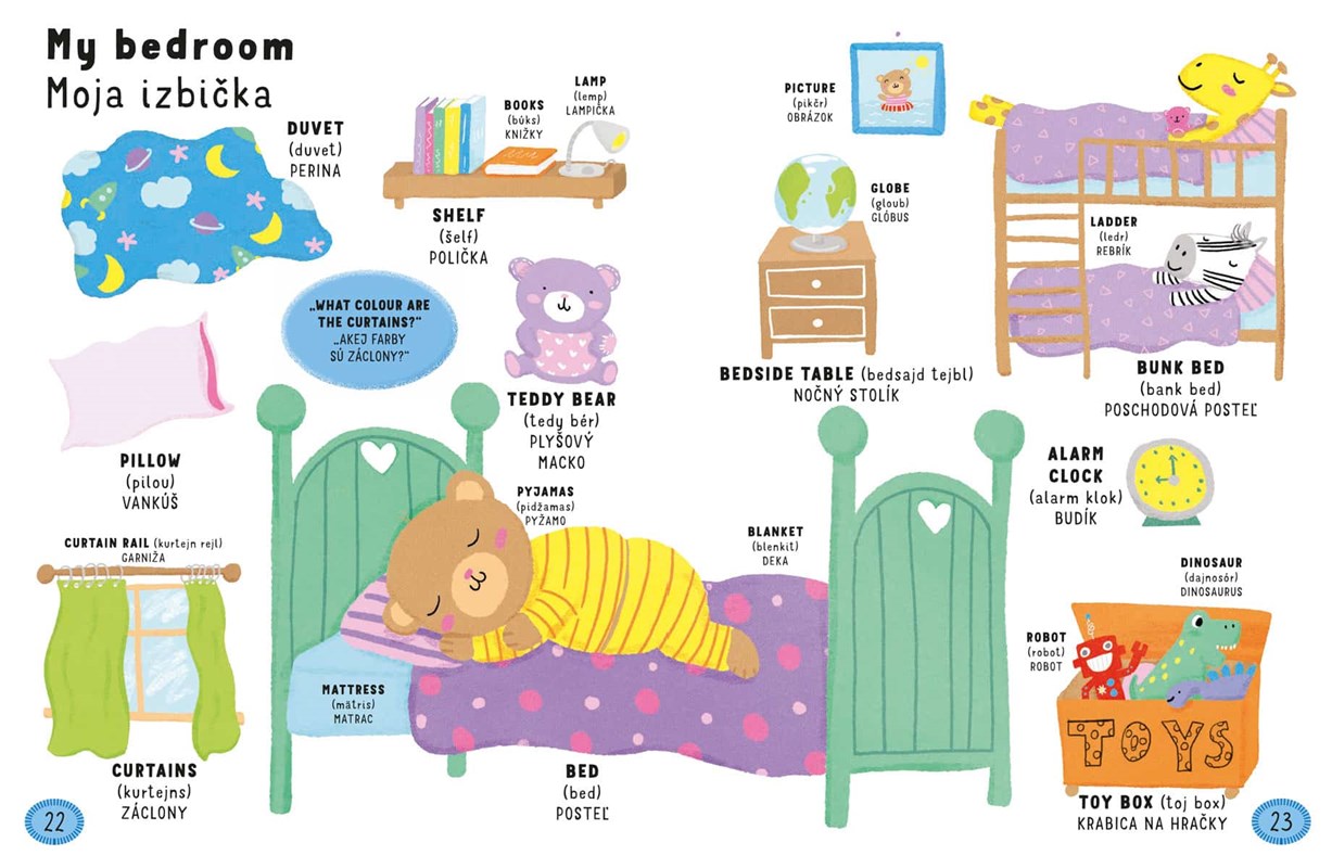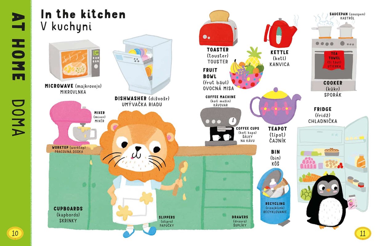 Malé deti zbožňujú, keď môžu objavovať svet okolo seba. Naučíme sa spolu názvy vecí okolo nás a to hneď v dvoch jazykoch. V tomto ilustrovanom anglicko-slovenskom slovníku pre najmenších nájdete na každej stránke aj drobnú úlohu.