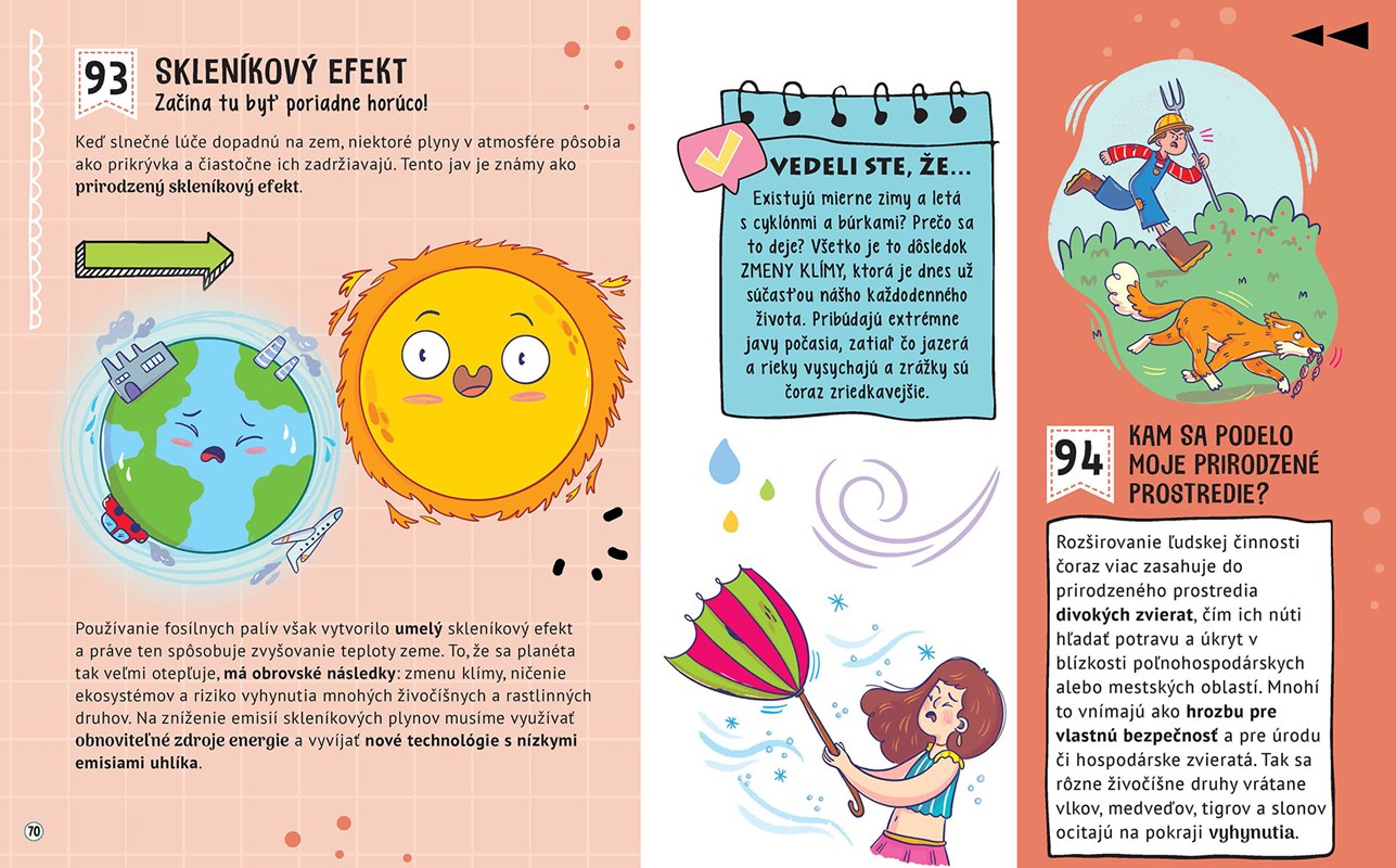 Viete, kedy sa zrodila planéta? Alebo prečo existujú ročné obdobia? Odhaľte tajomstvá našej planéty od jadra Zeme až po jej atmosféru. Je to úžasné miesto, ktoré je domovom viac ako 9 miliónom druhom foriem života. Prečítajte si o pohoriach a vulkánoch, moriach a riekach, o ekosystéme aj o tom, ako do života na Zemi zasahuje človek. Preskúmajte našu planétu pomocou tejto knižky, v ktorej nájdete 101 zaujímavých a úžasných faktov aj otváracie okienka skrývajúce nové záhady.