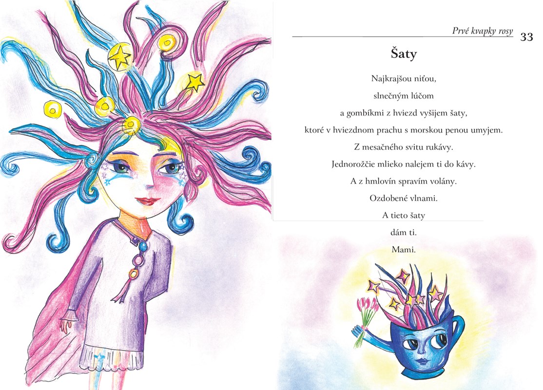 Slovami autorky: ,,Dúfam, že sa pri čítaní tejto knihy ponoríte do farebného sveta poézie a budete z nej mať rovnakú radosť ako ja, keď som ju písala a ilustrovala.“