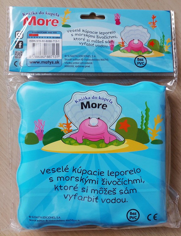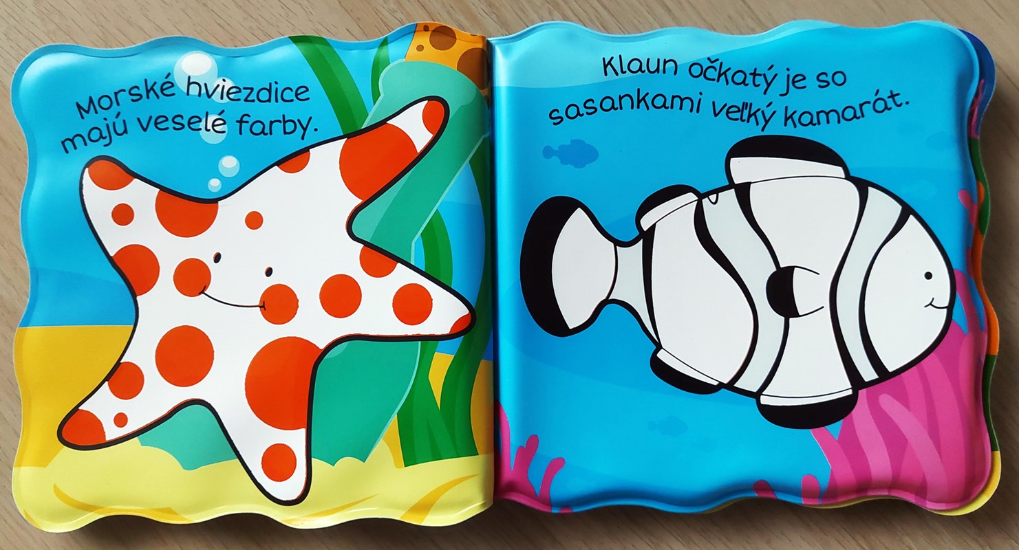 Séria Knižka do kúpeľa prináša deťom zábavu z vyfarbovania zvieratiek vodou! Krokom ku spríjemneniu chvíľ deťom počas kúpania je možnosť zabaviť ich leporelom. Nie však hocijakým, ale takým, ktoré sa rozžiari farbami po styku s vodou alebo so slinami. Alebo stačí pohár s vodou a drobné pršteky môžu kúzliť vodou priamo prechádzaním stranu po strane. O svojich drobcov sa nemusíte báť, pretože dané knižočky majú EÚ certifikát o zdravotnej neškodnosti. Môžu knihu močiť vo vode i olizovať, dokonca aj vtedy na nich spod obrázka vykukne farebné zvieratko. Veselé kúpacie leporelo s morskými živočíchmi, ktoré si môžu vyfarbiť vodou (morská hviezdica, klaun očkatý, štvorzubec, chobotnica, krab, morský koník).