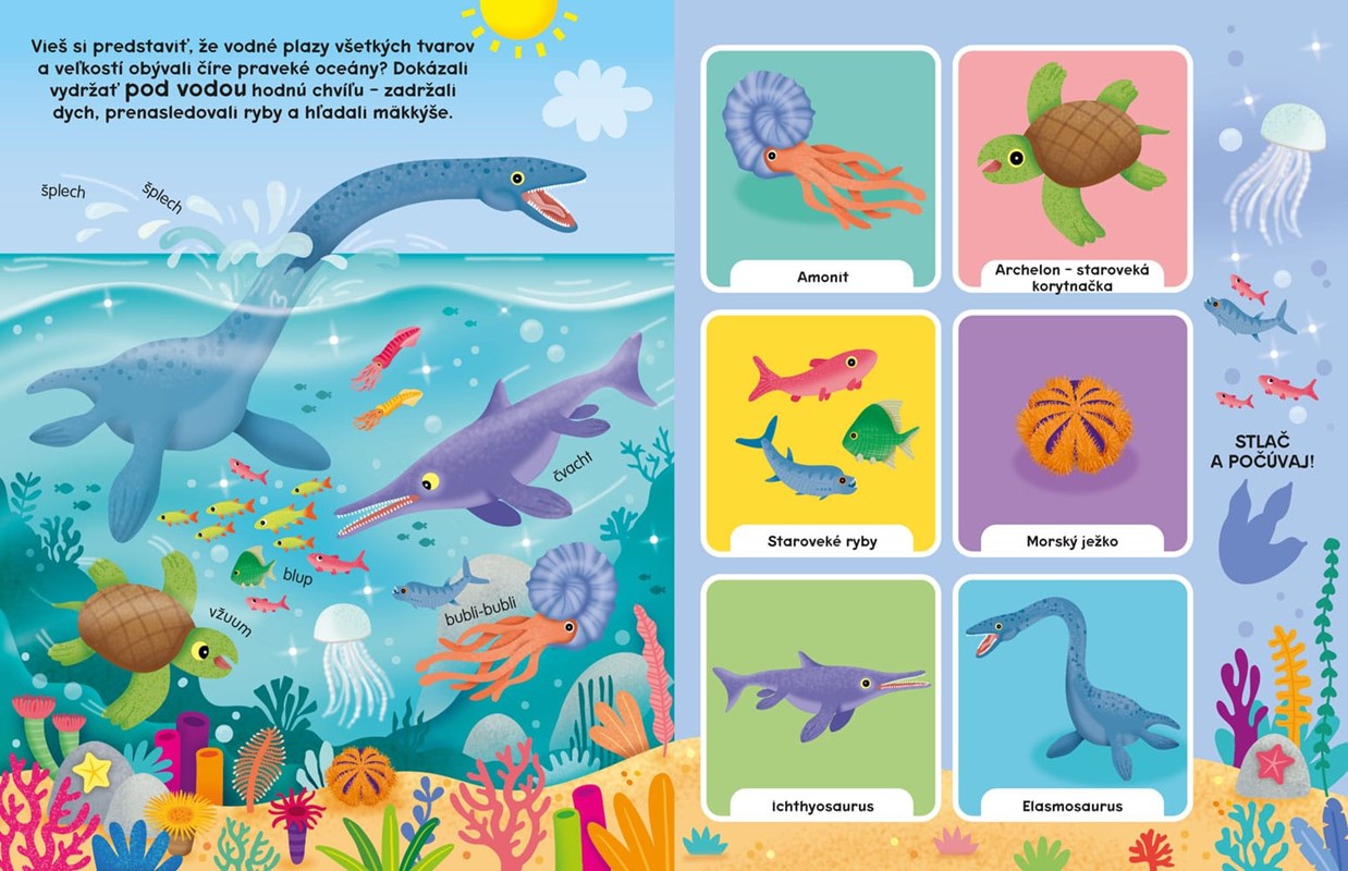 Táto farebná zvuková kniha je skvelým predstavením prehistorického sveta! Zabavte sa pri spoznávaní mien dinosaurov a ťuknutím na obrázky si vypočujte, aké zvuky vydávali.
